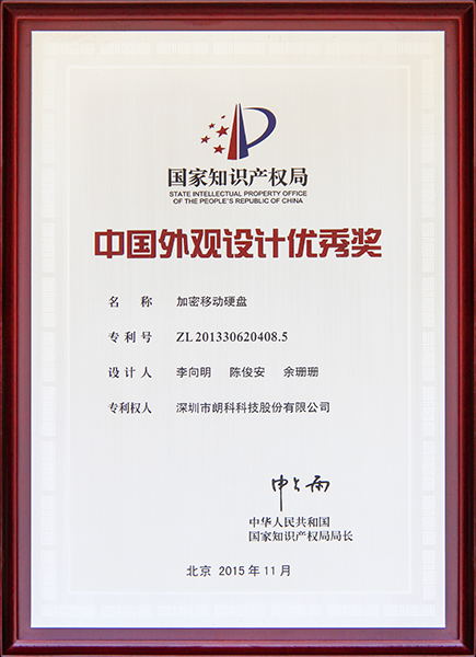 2015年11月 “加密移动硬盘”荣获国家第十七届中国专利优秀奖