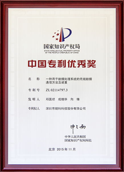 2015年12月 “一种用于数据处理系统的无线数据通信方法及装置”荣获国家第十七届中国专利优秀奖