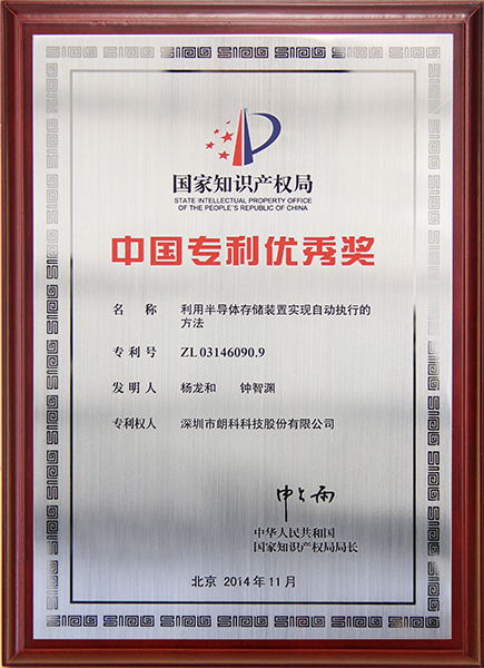 2014年10月 “利用半导体存储装置实现自动执行的方法”荣获第十六届中国专利优秀奖